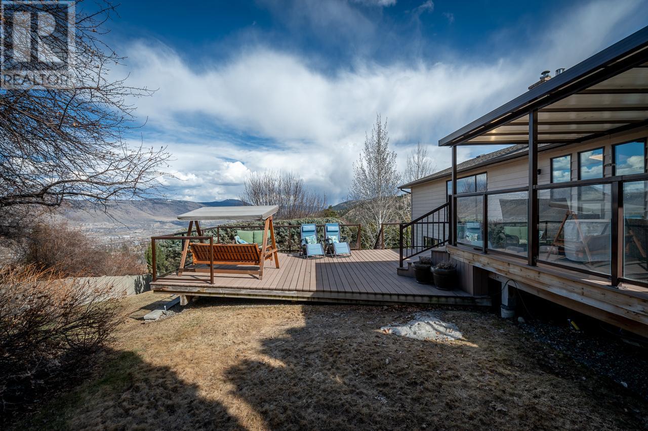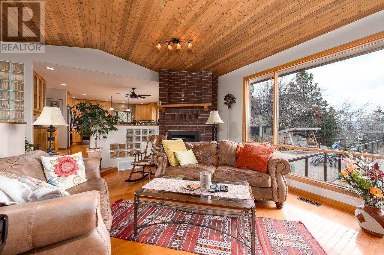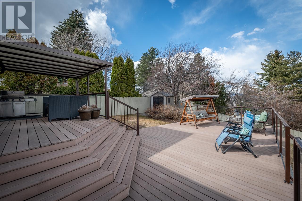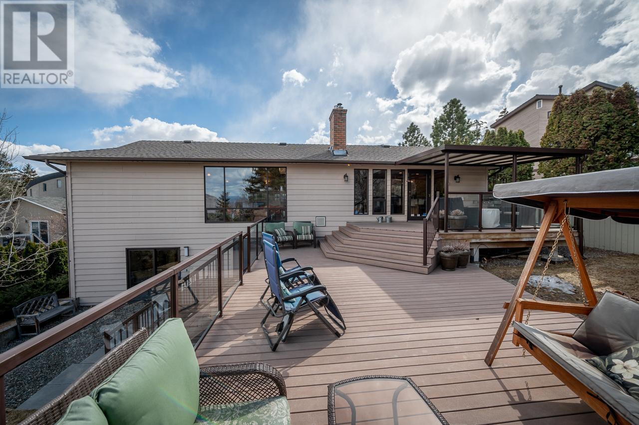 This private home is situated on an 11,000 sq ft lot with panoramic views of the valley. Located on a cul-de-sac in the heart of Sahali, this family home has many original details, such as; maple hardwood floors, pine tongue and grove ceiling features, and a brick gas fireplace. This classic rancher has a beautiful kitchen with a door to the patio sunken living room with an abundance of natural light. Complete with 3 bedrooms upstairs with an ensuite and full bathroom. The basement is a partial walkout with an additional bedroom, family room, rec room and office space. There is also ample storage with a small workshop and cold room. In recent years this home has had tasteful upgrades to enhance its original design, such as maple kitchen cabinets, slate tile and extensive work in the backyard, composite decking material on both patios, fencing around the entire property, and glass railings to enhance the beautiful view from inside and outside. All measurements are approx. and should be verified if deemed necessary. Book your showing today! (id:17834)