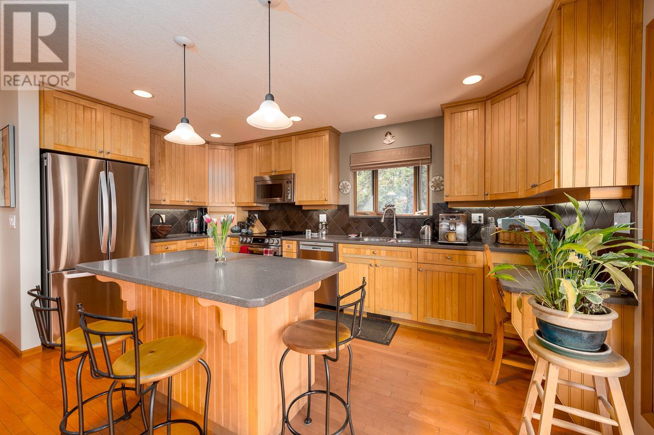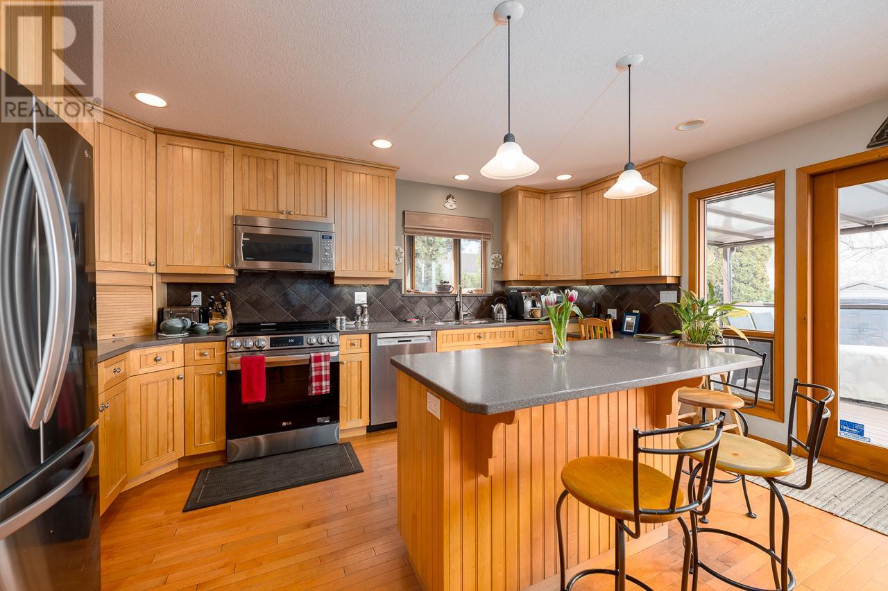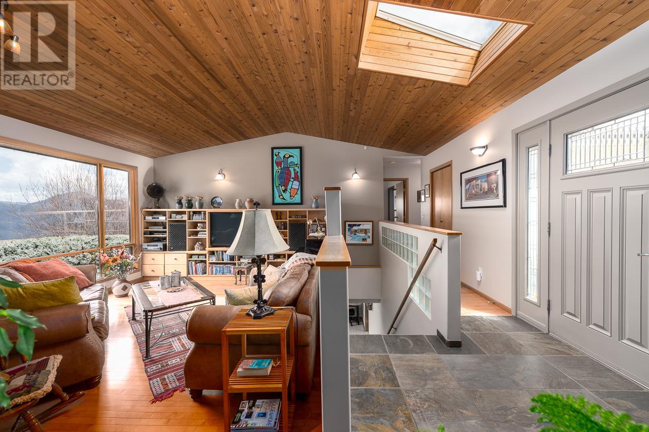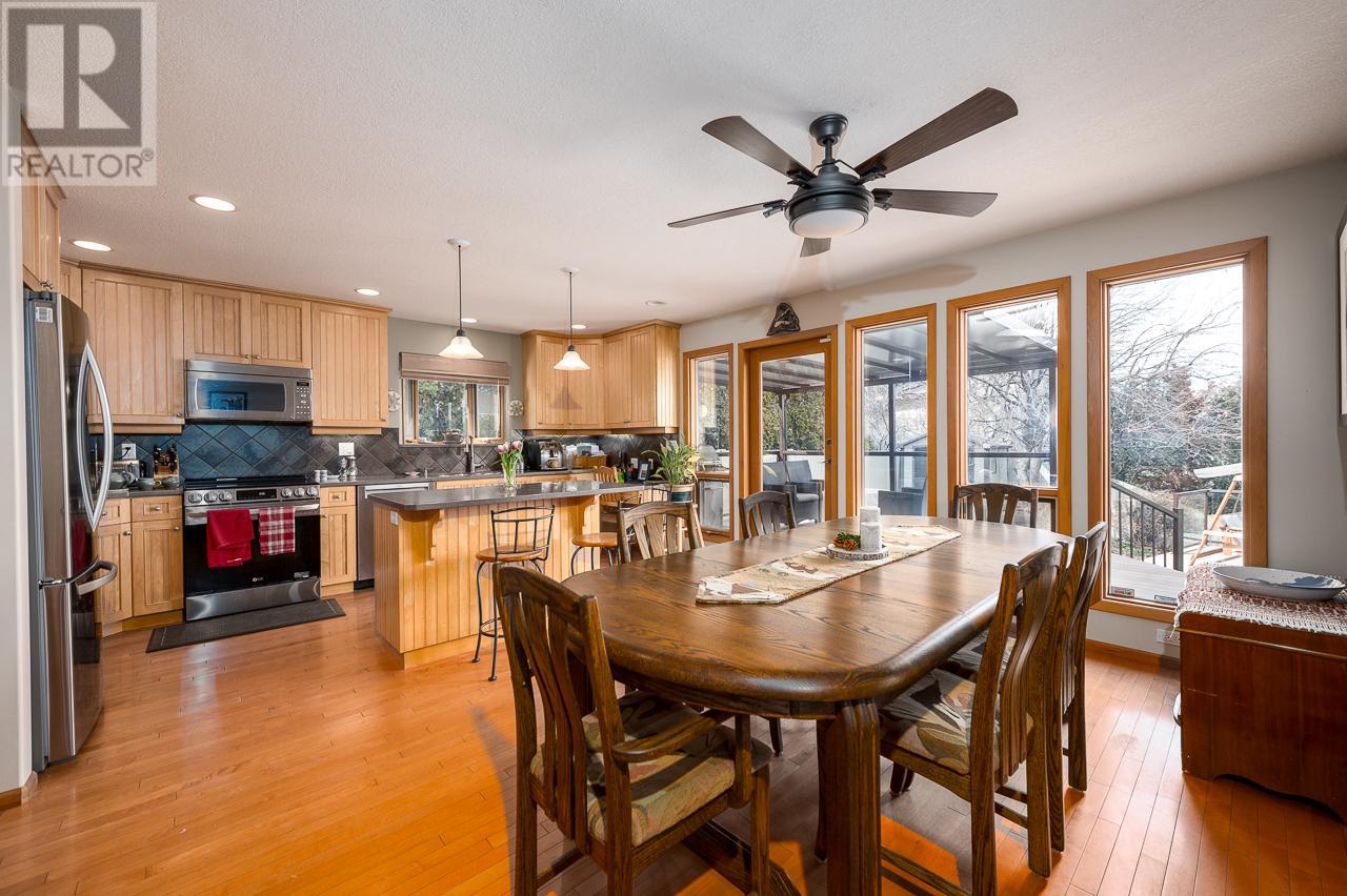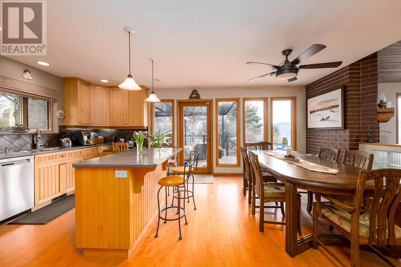 This private home is situated on an 11,000 sq ft lot with panoramic views of the valley. Located on a cul-de-sac in the heart of Sahali, this family home has many original details, such as; maple hardwood floors, pine tongue and grove ceiling features, and a brick gas fireplace. This classic rancher has a beautiful kitchen with a door to the patio sunken living room with an abundance of natural light. Complete with 3 bedrooms upstairs with an ensuite and full bathroom. The basement is a partial walkout with an additional bedroom, family room, rec room and office space. There is also ample storage with a small workshop and cold room. In recent years this home has had tasteful upgrades to enhance its original design, such as maple kitchen cabinets, slate tile and extensive work in the backyard, composite decking material on both patios, fencing around the entire property, and glass railings to enhance the beautiful view from inside and outside. All measurements are approx. and should be verified if deemed necessary. Book your showing today! (id:17834)